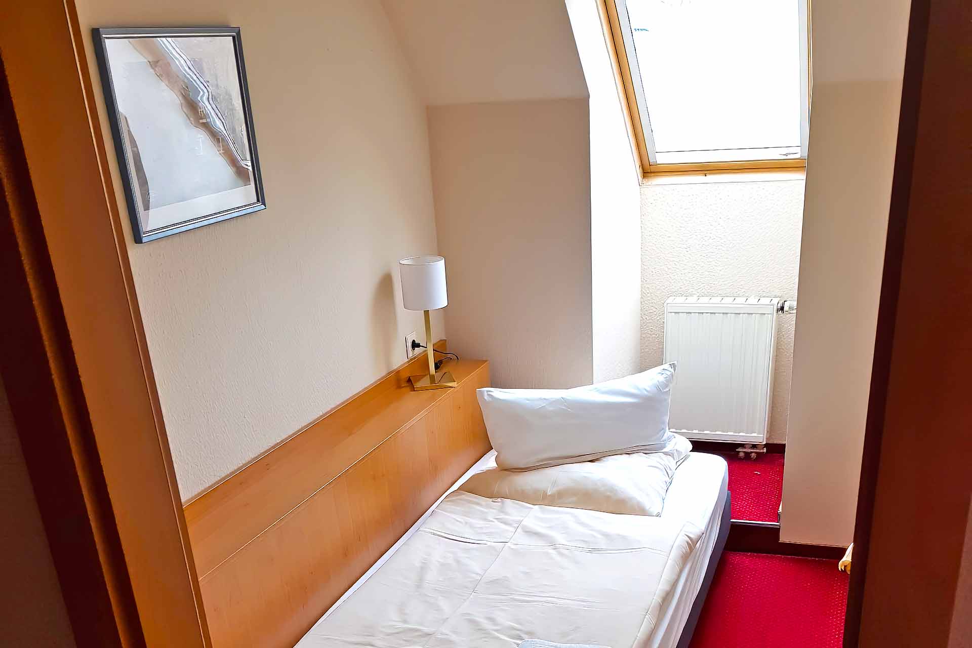 Our classically furnished triple room with approximately 30m² features a living/sleeping area